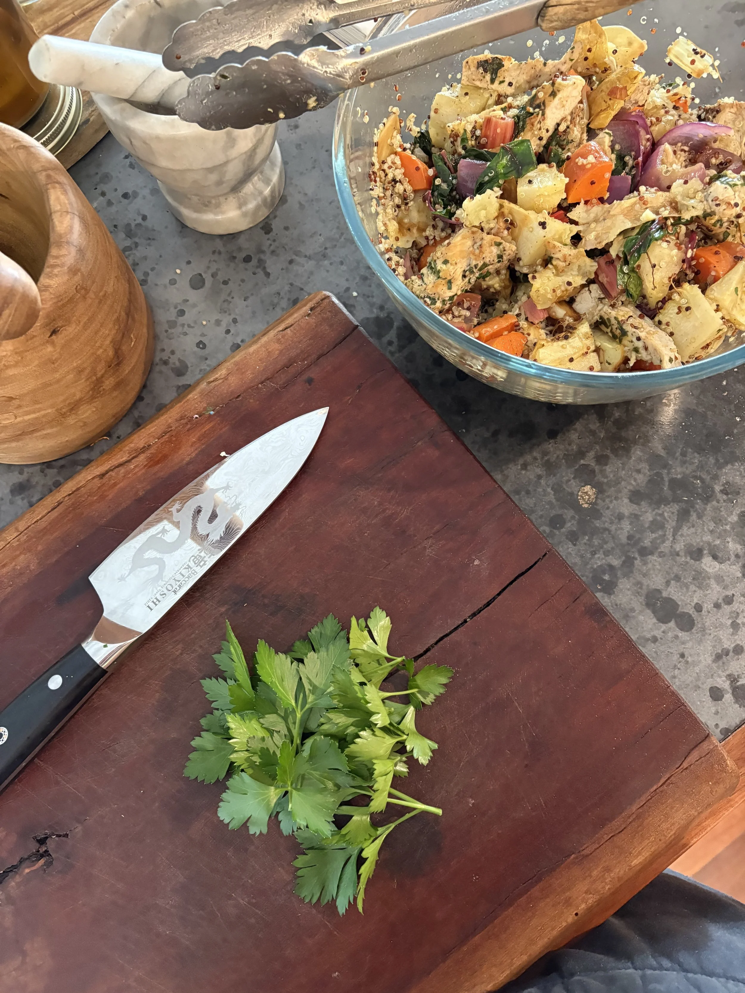 Once veg is cooked, add all ingredients together and mix with tongs or a big old spoon. Dress in fresh lemon juice, and maybe more parsley to serve.
